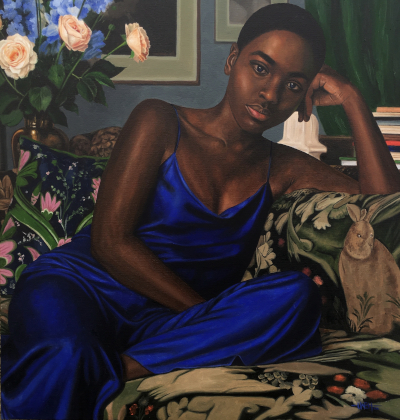 At just the beginning of his career, Uweh demonstrates remarkable command of the medium. His oil paintings are rich with emotion, layered meaning, and fine detail—each one a tender meditation on love, rest, and relationship. Women are shown not only as muses but as matriarchs, dreamers, and revolutionaries in quiet moments of reflection.